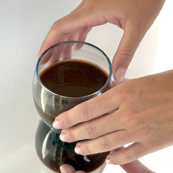 Tastes like a homemade cup of cacao - smooth, rich, and not too sweet.